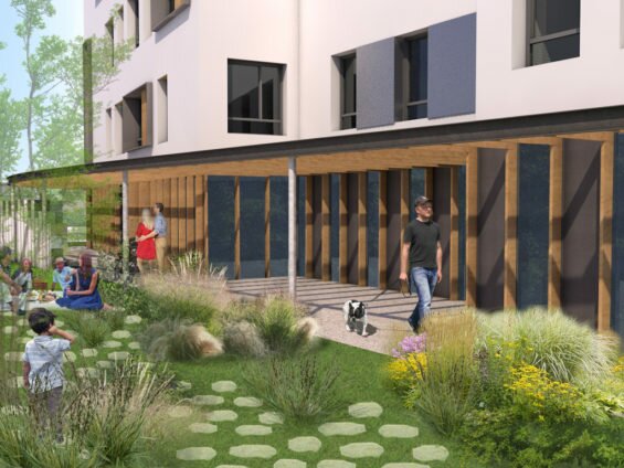 Parti architecturalAprès analyse exhaustive de la configuration actuelle de la résidence existante, notre objectif est de faire construire la nouvelle résidence en une seule tranche de construction. L’implantation du bâtiment est conforme aux règles du PLU et permet d’assoir notre projet en retrait de la rue Jean Jacques Rousseau pour affirmer une véritable respiration végétale sur celle-ci, qui s’est fortement urbanisée. Sur cette voie, la mise en valeur d’un espace vert travaillé à l’entrée de la nouvelle résidence vient assurer une transition plus douce et adaptée avec le quartier pavillonnaire limitrophe. La façade principale du bâtiment est implantée le long de l’emplacement réservé de la future voie de modes doux de manière à se mettre à la fois à l’abri de la rue Jean Jacques Rousseau et à ouvrir sur la future voie de circulation piétonne plutôt qu’automobile. Cette implantation permet de minimiser les impacts acoustiques sur les logements. Comme les façades majeures du bâtiment s’exposent sur la voie de modes doux et sur les jardins, les sonorités automobiles de la rue Jean Jacques Rousseau sont minorées dans les espaces verts en recul de cette rue et surtout dans les logements. Nous avons souhaité lui donner depuis la rue une image valorisante de copropriété, avec une grille qui laisse transparaitre l’entrée principale marquée par sa pergola courbe, à l’aide de séquences différenciées de bâtiments. L’entrée principale est un lieu rassurant, et surtout propice aux échanges et aux retrouvailles. Un espace de boites aux lettres situé sous cette pergola architecturée, expose sa centaine de modules sous la forme de plusieurs grandes fresques aux couleurs multiples et au calepinage aléatoire. Dès l’entrée de la résidence depuis la voie douce, la façade principale se dessine en fond de scène, en toute discrétion au regard de la rue Jean Jacques Rousseau. Par cette entrée, qui joue également la fonction de grand hall paysager à la résidence, on rejoint le hall d’entrée du bâtiment, et ensuite les paliers d’étage qui sont très largement baignés de lumière naturelle et de vues intéressantes. En complément de l’espace vert contre la voie de modes doux, un autre espace vert accessible aux résidents se trouve aménagé au nord-ouest de la parcelle, offrant un usage différent, avec entre autre un espace pour le jeu de pétanque. Les deux espaces verts proposent ainsi des ambiances variées et complémentaires au fil des saisons. Un accès véhicule, pour le parking et pour la maintenance, se glisse délicatement dans l’espace planté donnant sur la rue Jean Jacques Rousseau. Le revêtement des places de parking est proposé en Nidagravel pour minimiser au maximum la surface imperméable dans l’espace vert en cœur d’ilot. |