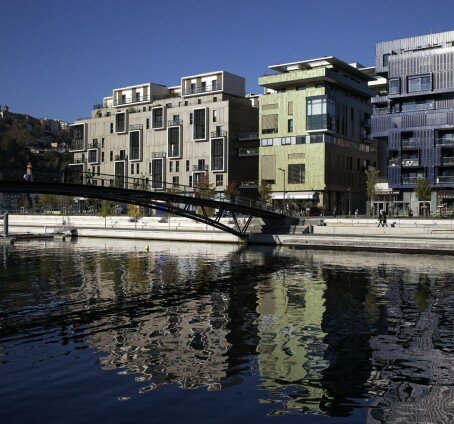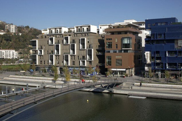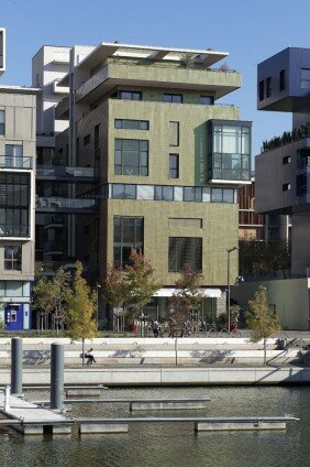 Parti architecturalAu confluent du Rhône et de la Saône se tient également le rendez-vous de la balme et de la plaine, de l'eau et du végétal; à leur rencontre se trouve la berge qui domptée par la main de l'homme se métamorphose en bâtiment. Le site du confluent est un fantastique espace naturel, en plein coeur de ville : rencontre de l’eau et du végétal, de la balme et de la plaine. Les logements ont été conçus tels de véritables loges pour admirer le spectacle du lieu, bien au-delà de la diversité de leur typologie, villa superposée, penthouse, flat et loft panoramiques. |