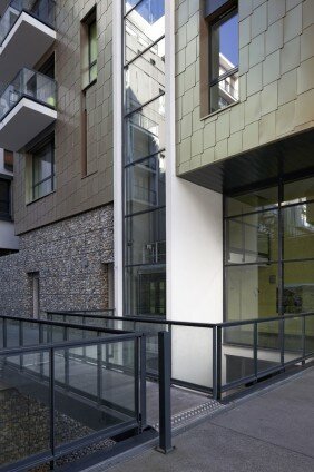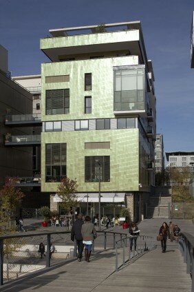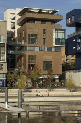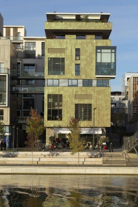 Lieu de l'opérationQuai Antoine Riboud Lyon 69002 Maître d'œuvreAtelier d’Architecture Hervé Vincent HQE Maître d'ouvrageNexity Apollonia - SPLA Lyon-Confluence Programme48 logements en accession dont 30 logements sociaux PLI pour la Foncière logement, 54 stationnements, commerces MissionComplète SHON Total3 100 m² m2 Budget3 968 000 € HT CalendrierLauréat de concours 2004 – livré fin 2010 |